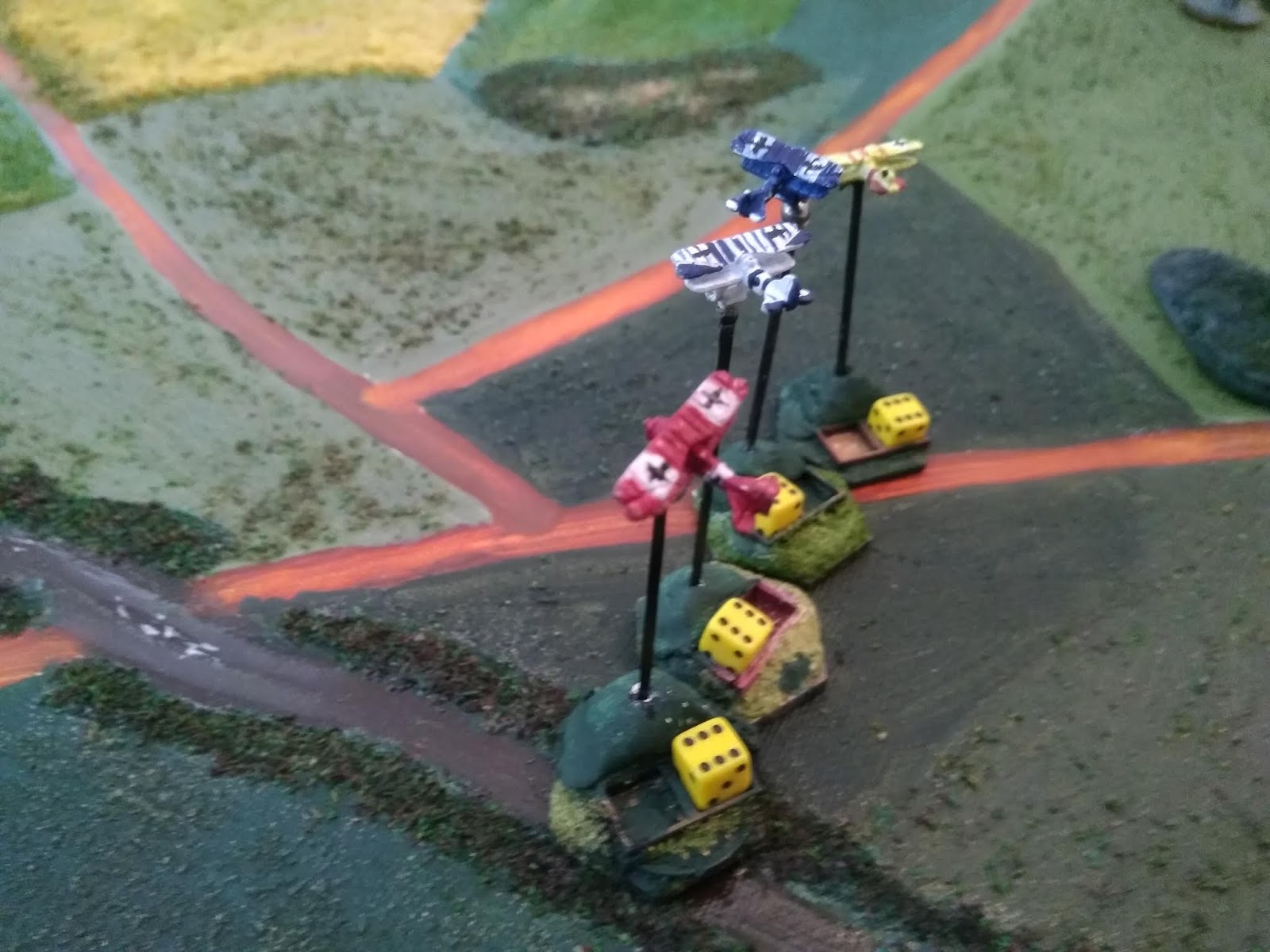 The Romans have a +2, against the Celts +4. In the combat the Romans have five elements or 15 men. The Celts have five elements, with 20 men, but only 15 of these can fight (the looser mob has two "lines" on the deeper bases.) 3 Romans are killed as are two Celts, but the line straggles as individual Roman elements are pushed back.