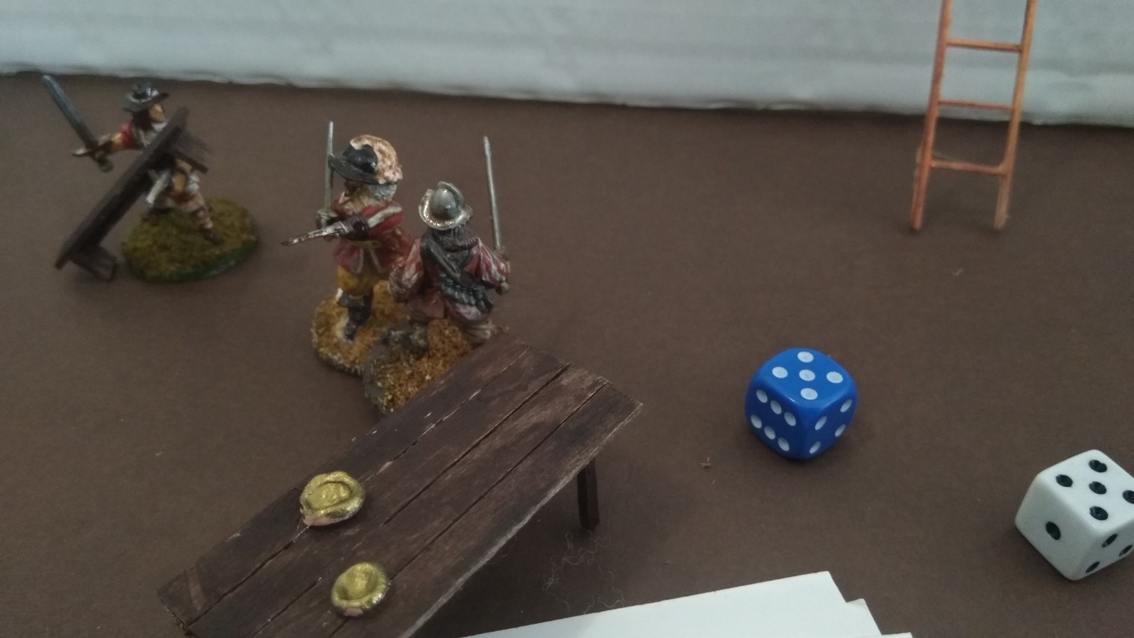 | Branagh moves into contact with two swords Lancaster. he rolls 1 and loses those three Swashbuckling points. |