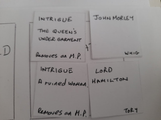 Active in wars, and the Treasury are the only other areas to have cards played directly. Politicians go into their respective parties on the floor of the house.